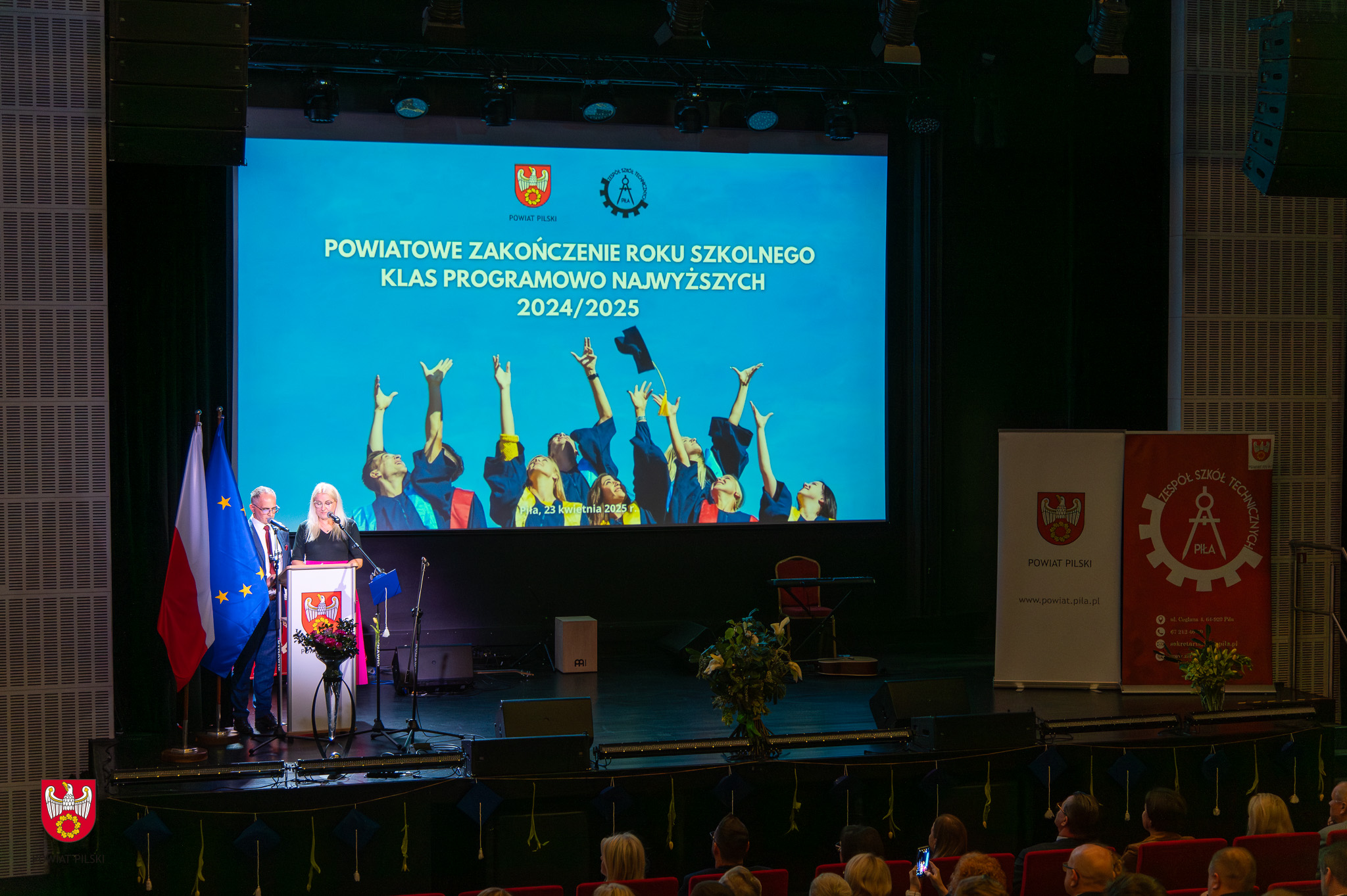 23 kwietnia w Kinie Iskra w Pile odbyła się uroczystość powiatowa zakończenia roku szkolnego 2024/2025 uczniów klas maturalnych. W uroczystości brali udział Beata Dudzińska – Prezydent Miasta Piły oraz Kazimierz Sulima, etatowy członek Zarządu Powiatu, Daria Lubońska – Samorządowiec, członek Zarządu Powiatu, Małgorzata Karwacka, Przewodnicząca Rady Powiatu w Pile, Grzegorz Wądołowski, wiceprzewodniczący Rady oraz Paweł Kądziela – Wiceprzewodniczący Rady Powiatu w Pile, Maria Kubica, przewodnicząca Rady Miasta Piły.