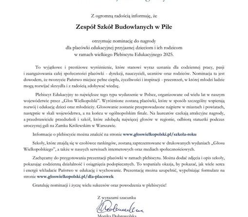 Read MoreMiło nam poinformować, że nasza szkoła kolejny rok z rzędu uzyskała nominacje w konkursie Głosu Wielkopolskiego do nagordy Szkoła Roku.