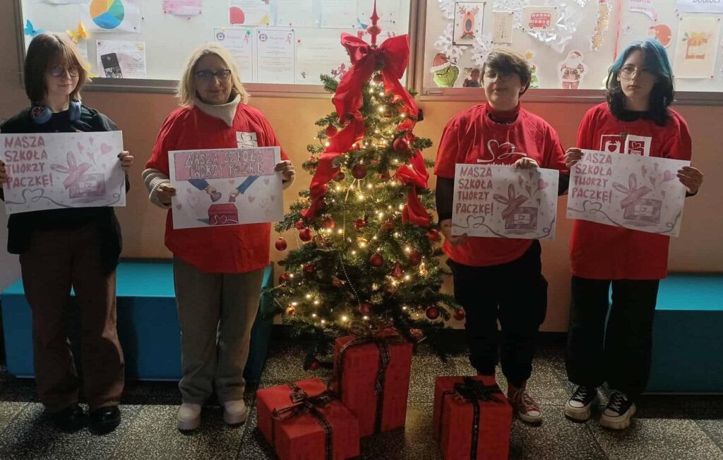 Hasło przewodnie akcji „NASZA SZKOŁA TWORZY PACZKĘ”.