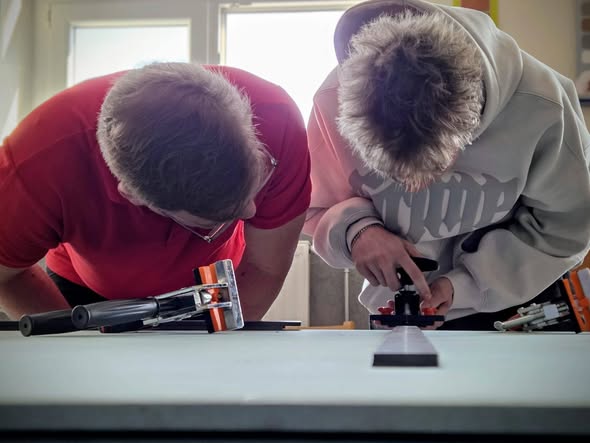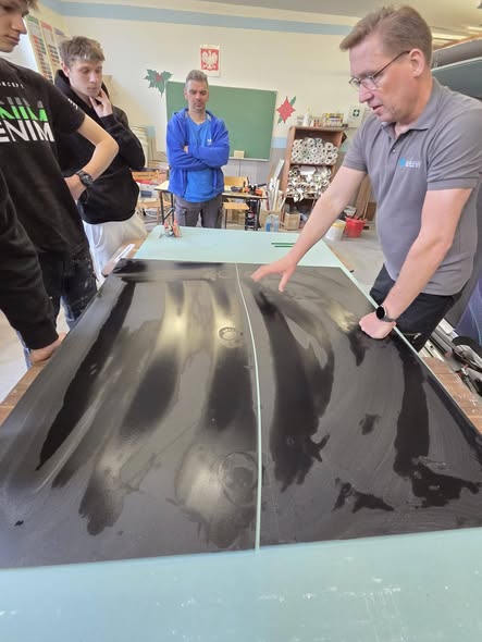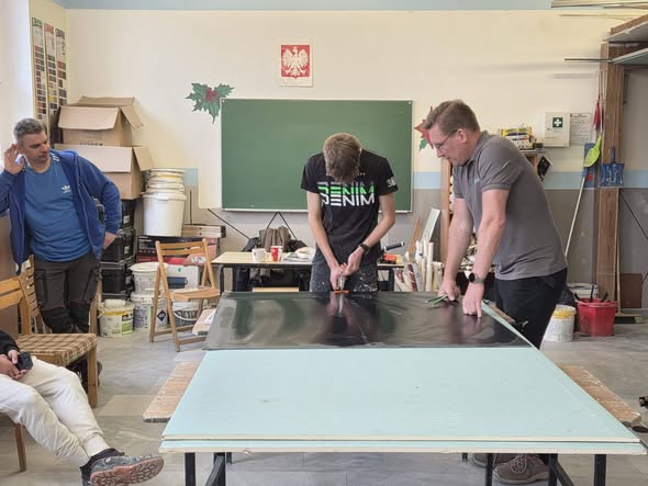 W dniach 19-20.03.2026 uczniowie klasy 3WZ w zawodzie Monter zabudowy i robót wykończeniowych w budownictwie wzięli udział w szkoleniu zorganizowanym przez Stowarzyszenie Branży Wykończeniowej. Podczas szkolenie, które poprowadził Pan Tomasz Jefimow (Prezes Stowarzyszenia, rzeczoznawca, biegły sądowy i nauczyciel praktycznej nauki zawodu) uczniowie poznali tajniki cięcia i układania płytek wielkoformatowych. Gościem specjalnym pierwszego dnia szkolenia był instruktor firmy Ultrament przedstawiając uczniom możliwości płyty budowlanej DoIT. Pomysł uczniów na wykorzystanie tej płyty można zobaczyć na zdjęciu (karmnik