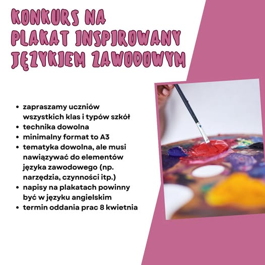 Zapraszamy wszystkich uczniów do udziału w konkursie plastycznym na plakat inspirowany językiem zawodowym.